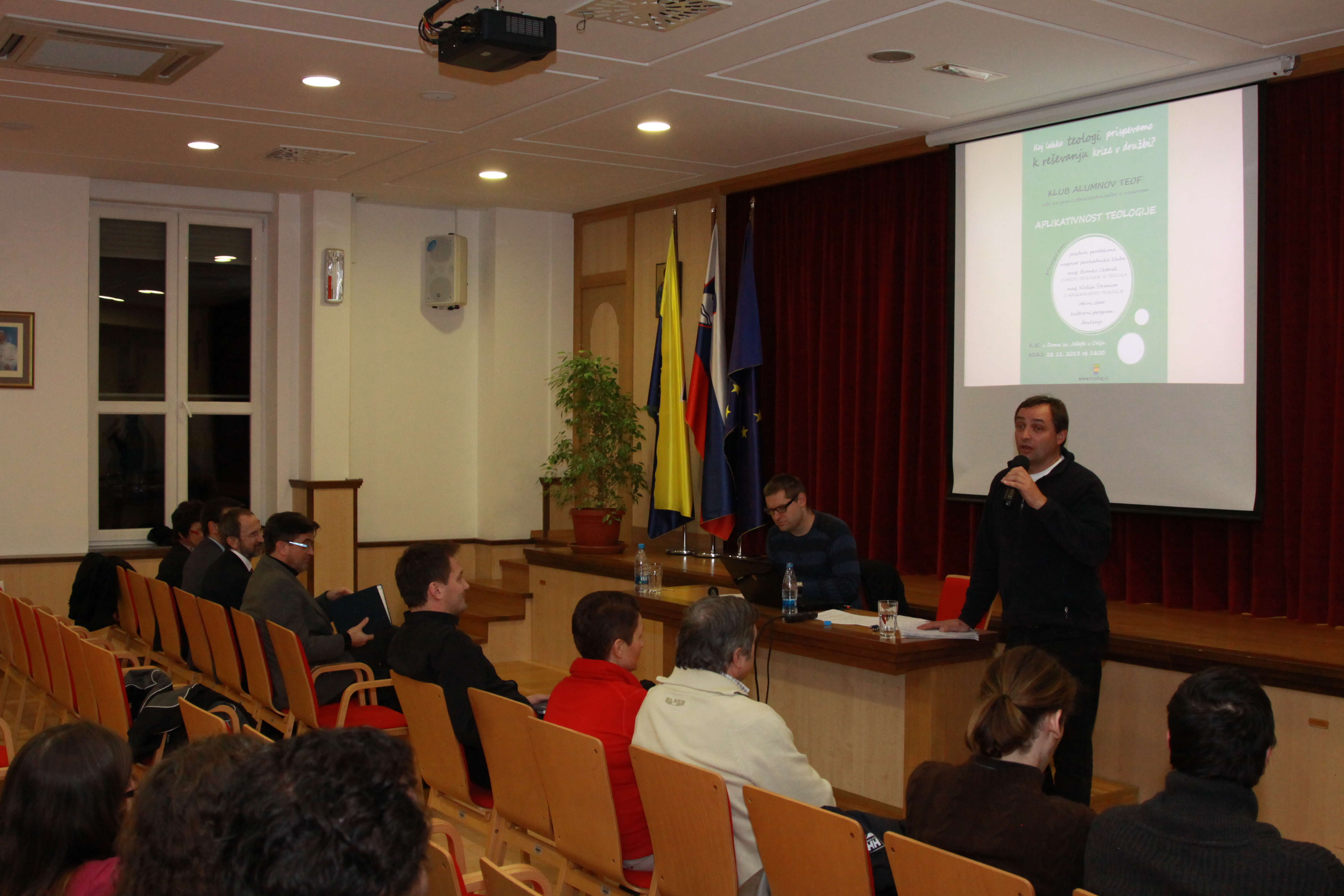 Dodatna popestritev večera je bil sijajno vodeni občni zbor društva alumnov, ki je s svojo kratkostjo podrl vse rekorde. Trije odlomki iz literarnih besedil od 13. do 20. stoletja so še dopolnili sliko o mestu teologa v družbi nekoč in danes. Končno so se gostitelji iz Celja izkazali še z izborno pogostitvijo. Vsaj mrzla pečenka bi si skoraj zaslužila mesto v kakšnih analih. Škoda, da prireditve z obiskom ni počastilo še več društvenih članov.