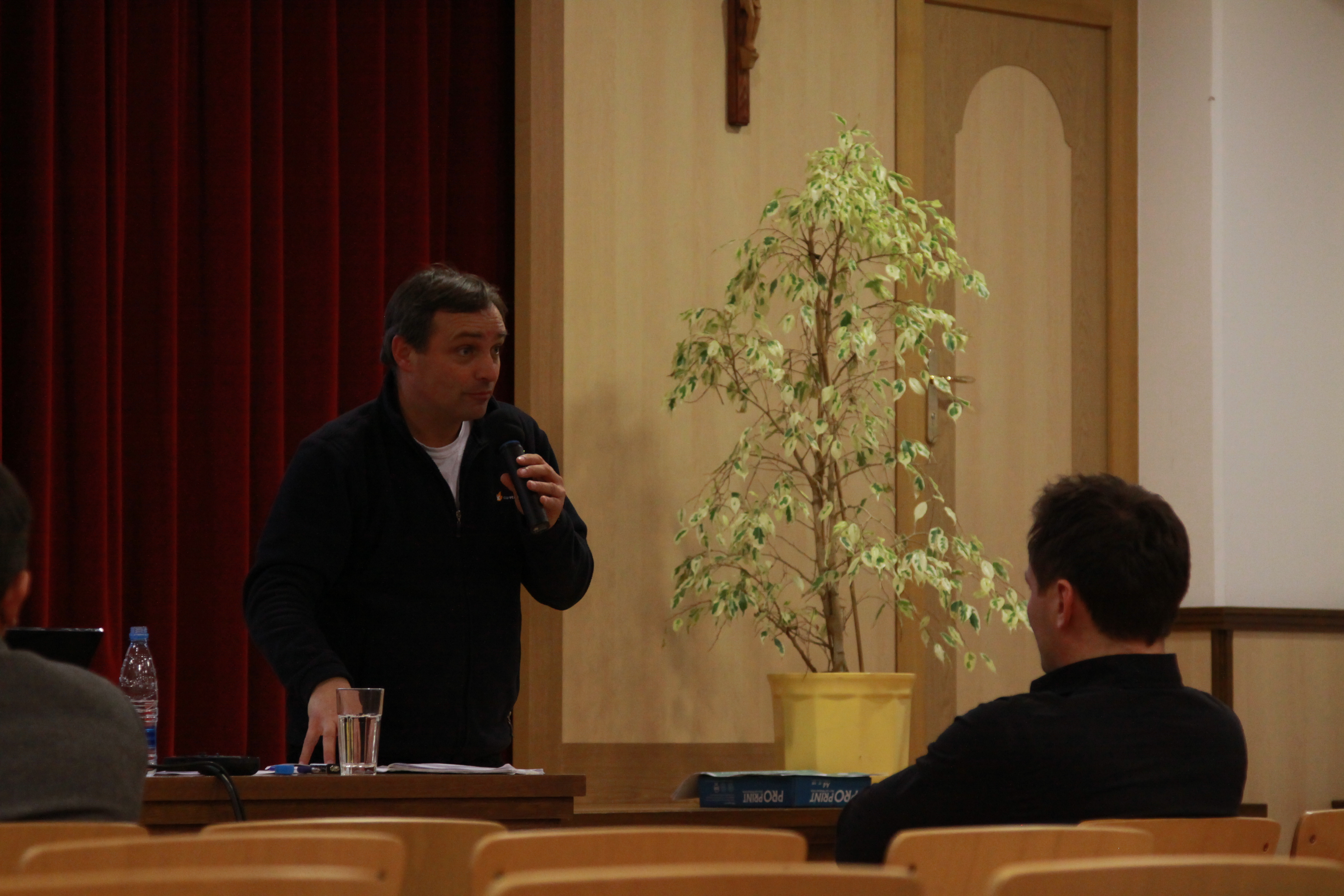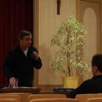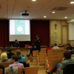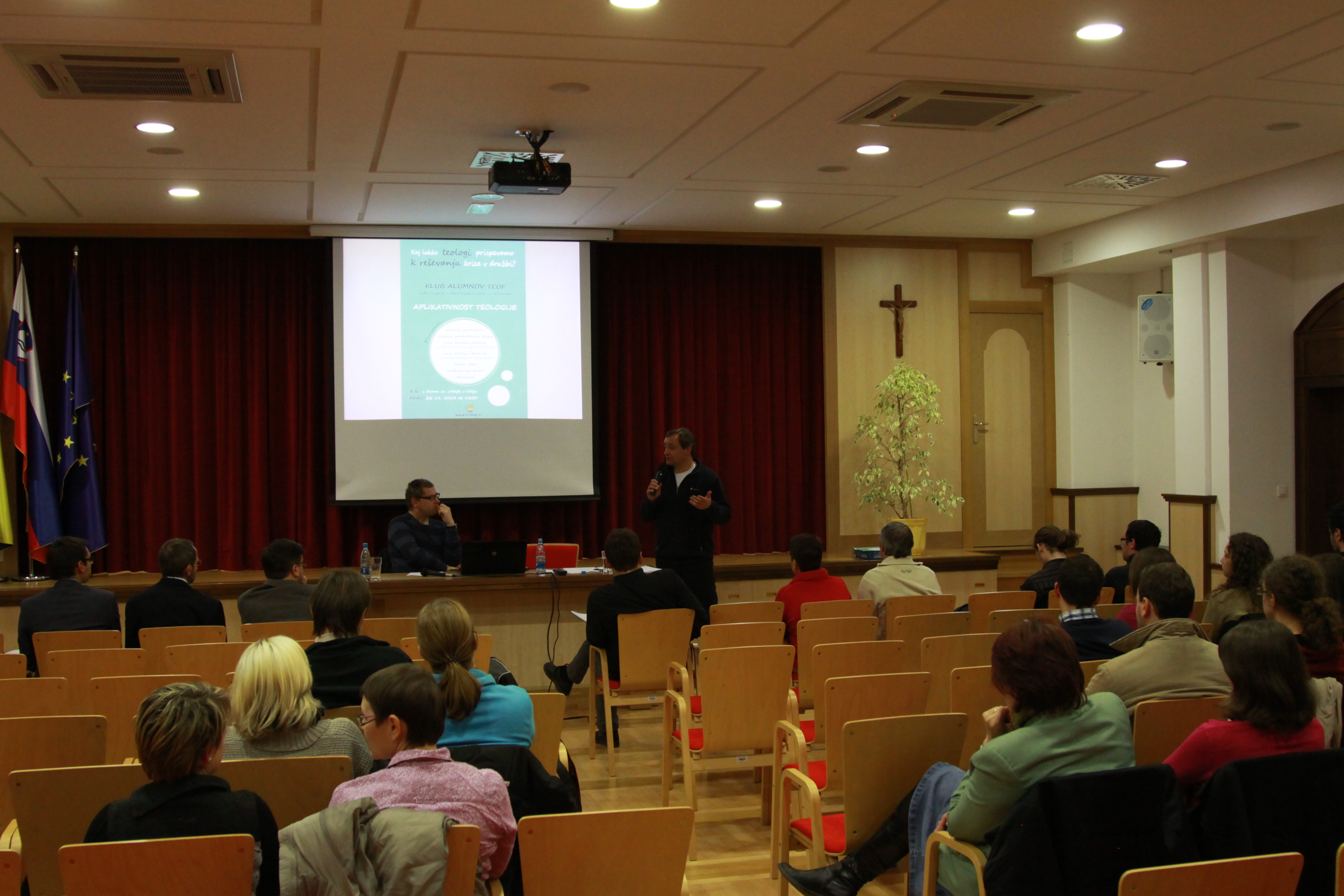In bilo je kaj videti in slišati. V osrednjem delu večera sta možgane in čustva obiskovalk in obiskovalcev precej razmigala klaretrinec mag. Branko Cestnik in mag. Klelija Štrancar, teologinja, ki se že vrsto let ukvarja z duhovnim spremljanjem umirajočih. Pater Branko se je suvereno sprehajal skozi razgibano cerkveno dogajanje zadnjih dveh desetletij in natresel vrsto pomenljivih podrobnosti, ki oblikujejo življenje Cerkve na Slovenskem, pa tudi mesto (za) laiškega teologa v njej (ali pogosto umanjkanje tega mesta). Da klena Slovenec in Slovenka z veseljem dasta za obnovo kapelice, za katehistinjo pa jima sold nikakor ne gre izpod palca, med njimi ni najmanj pomembna. Klelija Štrancar je po drugi strani spregovorila o tem, kako je med študijem teologije pridobljena znanja in veščine uporabljala (ali bolj učeno aplicirala, saj je bila rdeča nit večera aplikativnost teologije) na svojem delovnem mestu. Pri tem ni skušala olepševati podobe svojega delovnega vsakdana, ki so ga zaznamovali tudi številni klišeji o tem, kdo ali kaj je teolog.