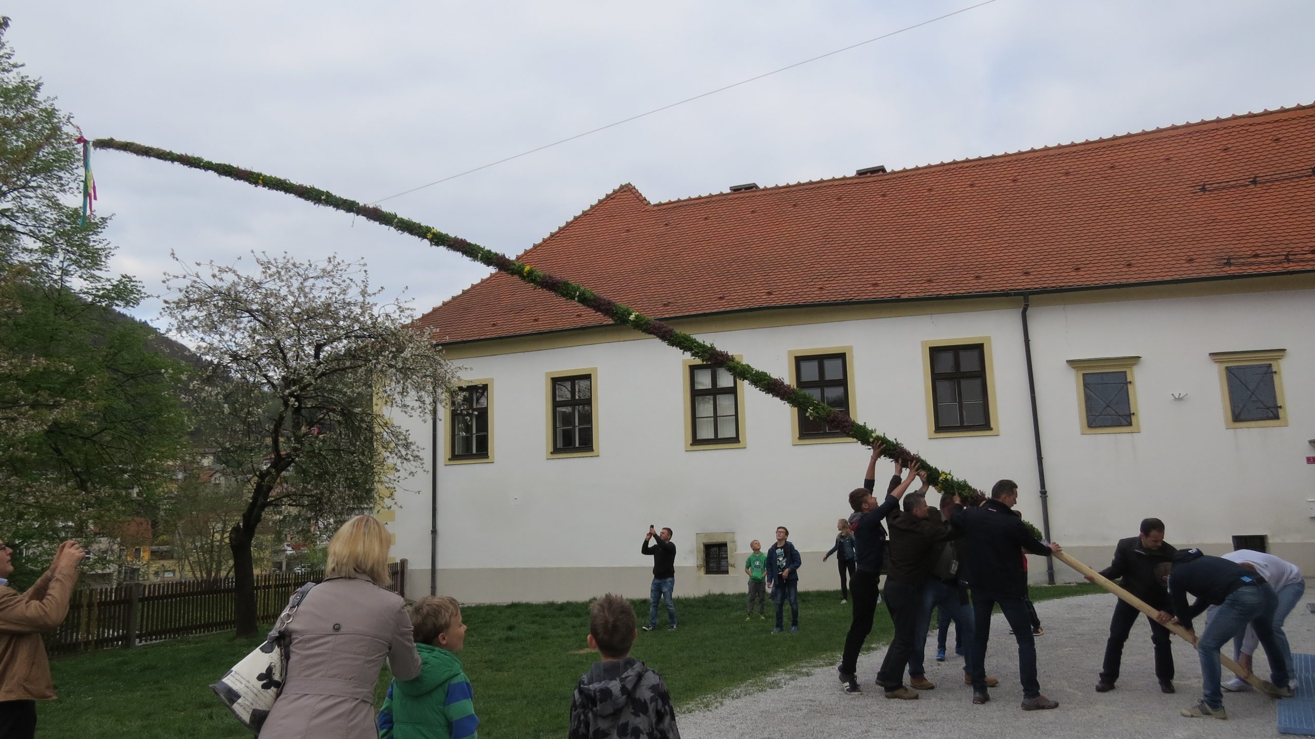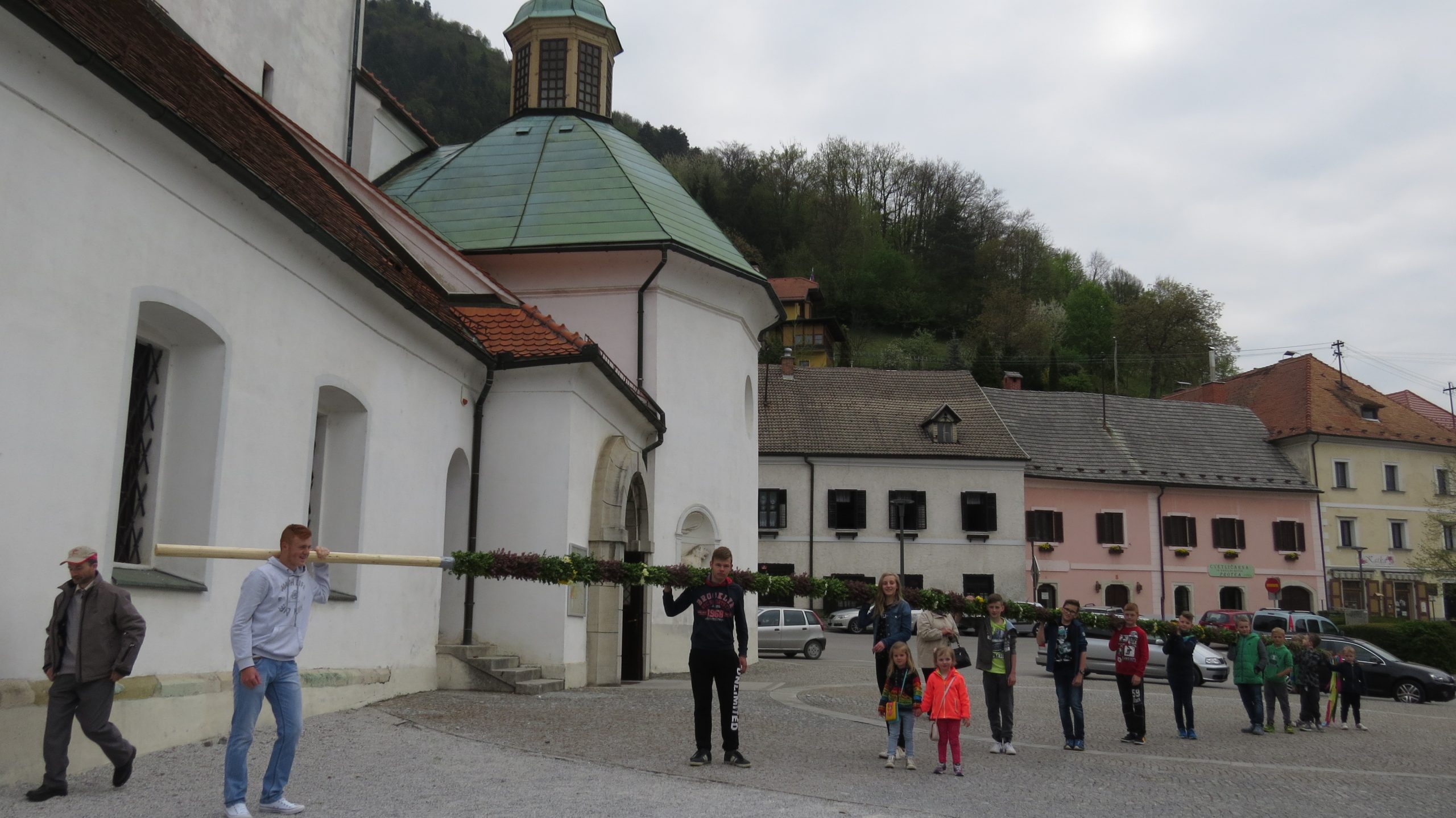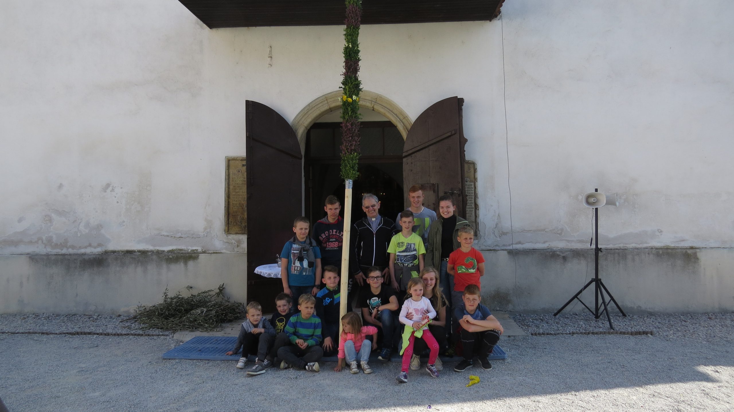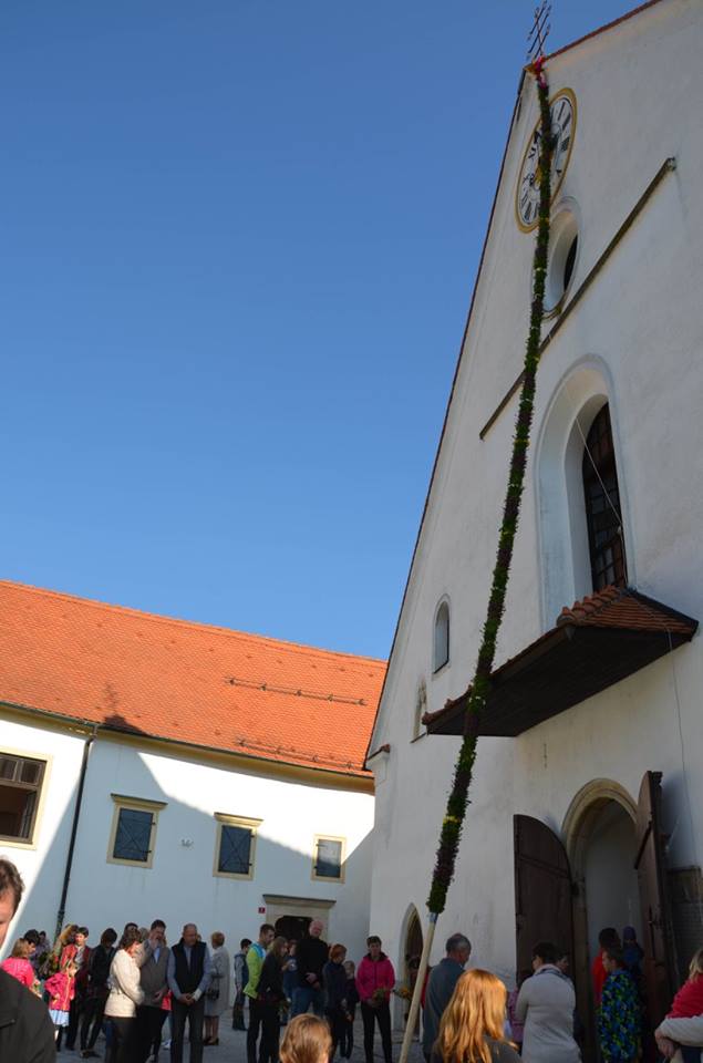Pred farno cerkvijo sv.Martina v Laškem je letos znova stala butara velikanka. K blagoslovu so jo, letos dolgo 17m, prinesli mladostniki in otroci iz vasi Trojno.
