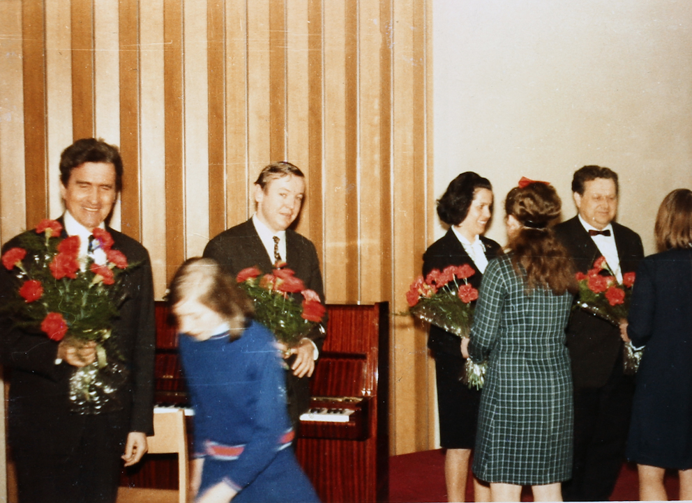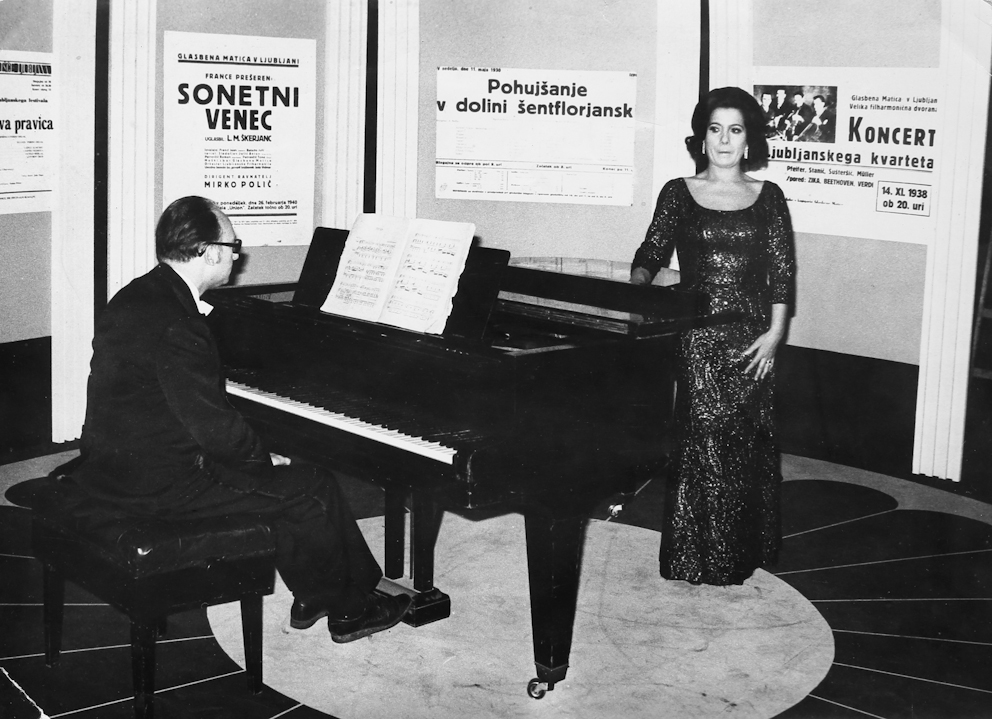 S pianistom Leonom Engelmanom tik pred snemanjem oddaje 400 let slovenske glasbe – Lucijan Marija Škerjanc januarja 1971.