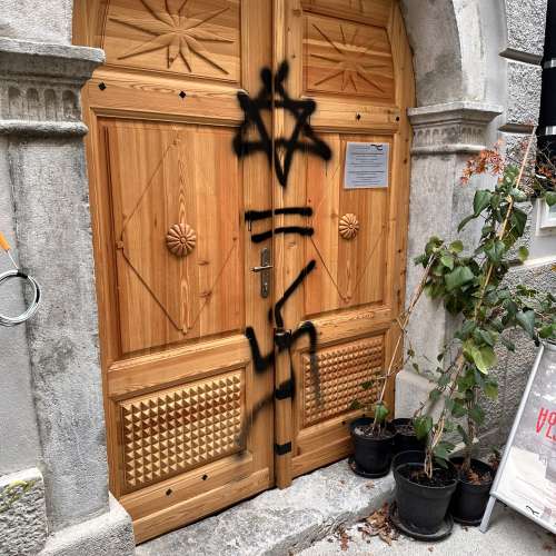 Na vrata judovskega centra nestrpneži narisali svastiko