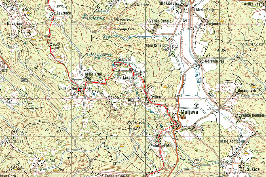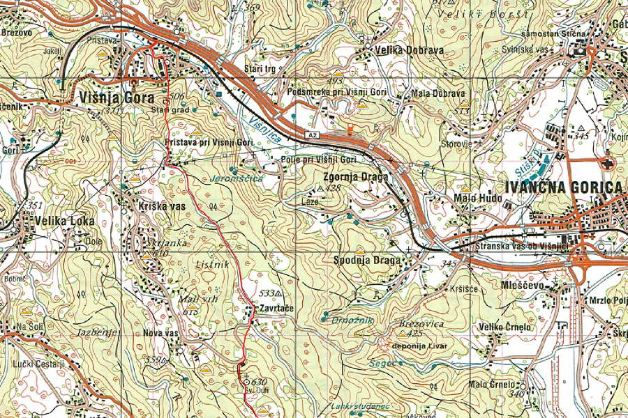 Zemljevid prvega dela poti: Višnja gora – Polževo (Sveti Duh)