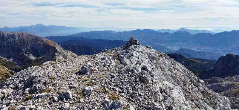 Lahko zaključimo že tu ali pa se povzpnemo do sedla med Debelim vrhom in Ogradi. Še urico hoda. Od tu naprej pa po brezpotjih. Najprej se je treba povzpeti skoraj pod vrh Debelega vrha, pa nato spustiti v kraško dolino na njegovi vzhodni strani. Sledi uro in pol krevljanja po razbitem kraškem svetu in potem do sedla med Vršaki in Hribaricami. Divjina, da bolj ne bi mogla biti. Potem pa ostro na desno in po grebenu do Vrha Hribaric, 2388 metrov visoko. Na vrhu pa kup kamenja in razgled za bogove.