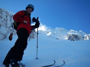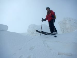 Vzpon s turnimi smučmi na nogah je bil skoraj idealen do strme grape pod Vrtačo. Grapa pa je postajala vedno zahtevnejša, ponekod ledena, drugje se je vdiralo do pasu. Pred nama seveda ni šel nihče, od katerega bi lahko imela zaradi stopinj lažji vzpon. Za piko na i pa nama je začela pot ovirati gosta megla, zaradi katere nisva videla niti par metrov pred seboj. Smučke sva raje dala na nahrbtnik in se tako podala proti vrhu. Ves čas ob vzponu, kjer je bila med nama tud smrtna tišina zaradi ne ravno idealnih razmer, sem razmišljala, kakšen bo šele spust. Zavedala sem se, da ne smem narediti niti ene same napake, ker glede na strmino in razmere bi se še z cepinom težko ustavila. Le nekaj metrov pod samim vrhom pa sva v trenutku stopila iz megle in v manj kot petih minutah stala na vrhu Vrtače, obsijanem z žgočim soncem. Naokoli pa je bila megla, iz katere so strmeli preostali vrhovi. Pihljal je veter, kateri je meglo venomer spreminjal in tako se je vmes odprl celo enkraten pogled na sosednjo Avstrijo. Ob takšnem razgledu se je bilo kar težko spustiti nazaj v dolino. Spust se je na srečo izkazal za mnogo lažji, kot sem si pred tem predstavljala, tako da sva na koncu dejala »tudi pela je bila enkratna«.