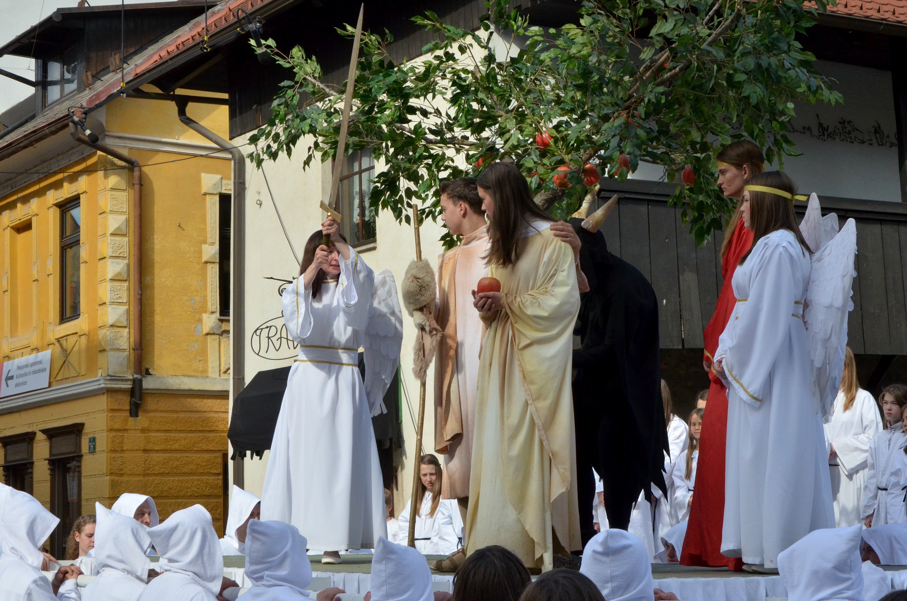 Škofjeloški pasijon, ki ga je pred skoraj 300 leti napisal kapucin oče Romuald, Lovrenc Marušič, je uprizoritev, ki je ni mogoče doživeti nikjer v Sloveniji in v taki obliki nikjer v svetu. Preko 900 ljubiteljskih igralcev, od tega 67 konjenikov sodeluje v predstavi, kjer se na štirih prizoriščih pred nami odvije 20 prizorov – od Adama in Eve v raju, preko dramatičnega prikaza smrti in pekla, Gospodovega slavnostnega vhoda v Jeruzalem, Njegovega trpljenja, križanja, do molitve kralja Davica pred skrinjo zaveze.