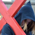 Nosilec križa s puštalsko cerkvijo v ozadju